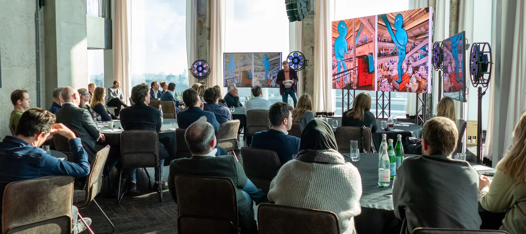 Blurring Lines: a Travel Retail Media Event werd op woensdag 6 maart door Schiphol en de Combinatie van Factoren georganiseerd met uitzicht op Amsterdam vanuit de Adam Tower.