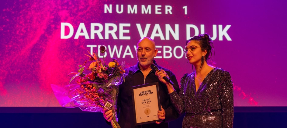 Voor het vierde jaar achter elkaar staat Darre van Dijk van TBWA\Neboko op nummer 1. Hij voelt de hete adem van TBWA\Neboko CEO Rik Ledder in zijn nek, die stijgt van 3 naar 2 en daarmee van plaats wisselt met Aad Kuijper.