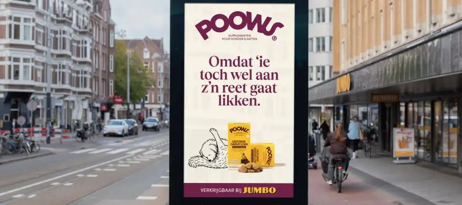Fitzroy ontwikkelde de campagne die is uitgerold via outdoor, social en online kanalen. De producten van Poows zijn verkrijgbaar via het eigen online kanaal en bij Jumbo.