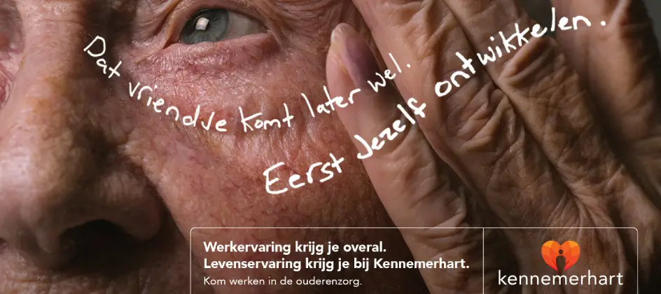 Kennemerhart, een organisatie in de ouderenzorg, lanceert samen met Happiness Amsterdam de employer branding-campagne Werkervaring krijg je overal. Levenservaring krijg je bij Kennemerhart. De campagne benadrukt de unieke waarde van werken met ouderen en speelt in op de groeiende vraag naar medewerkers in de ouderenzorg.
