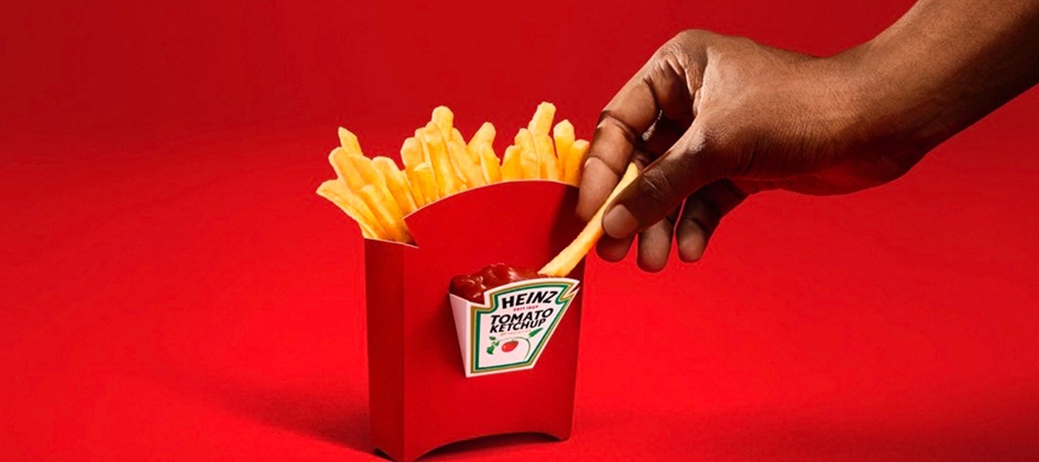 HEINZ heeft de HEINZ Dipper geïntroduceerd. Het bakje combineert friet en ketchup in één verpakking, waardoor consumenten geen losse sauszakjes meer hoeven vast te houden en het risico op knoeien wordt beperkt. Het gepatenteerde ontwerp wordt beschikbaar gesteld bij deelnemende restaurants en sportstadions in elf landen.