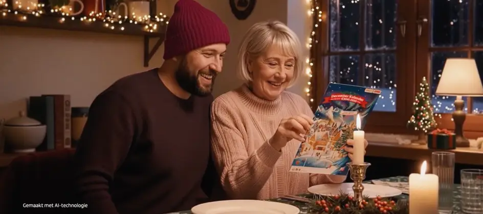 De commercial toont een man die zijn Decemberkalender koopt en letterlijk de magische wereld van de kalender instapt. Wat kijkers niet direct zien: een groot deel van deze wereld is digitaal opgebouwd met AI-gegenereerde assets, naadloos geïntegreerd in een geanimeerde workflow om consistentie en controle te behouden. Wanneer de camera uitzoomt, lijkt het alsof we naar de echte man en zijn moeder kijken, maar ook zij zijn volledig gecreëerd met AI.