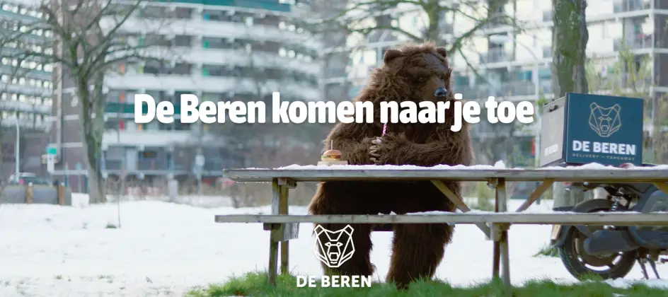 OK Creative Agency lanceert een campagne voor de bezorgformule van De Beren. De horecaketen telt ruim 25 bezorgrestaurants in Nederland, maar die tak van het merk is nog niet bij iedereen bekend. Met het concept rond De Bezorgbeer moet daar verandering in komen.