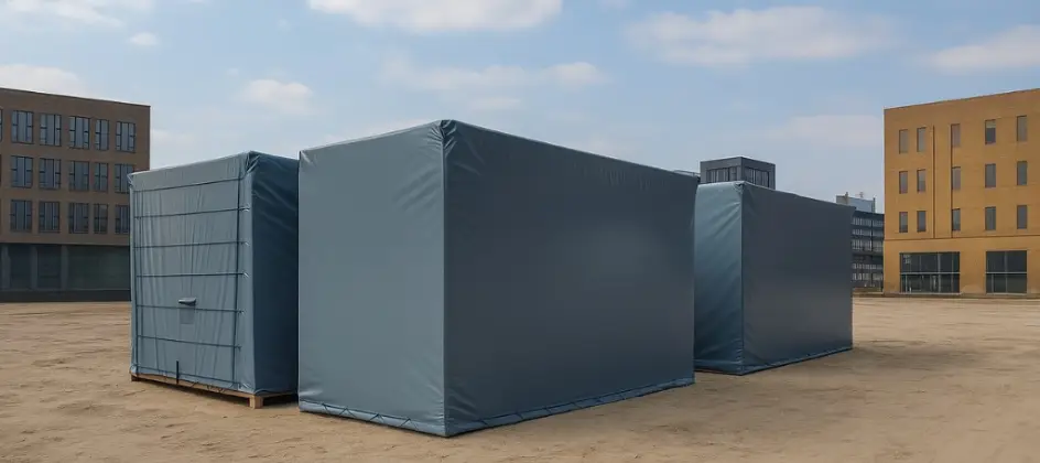 Onze prefab hoezen zijn ontworpen voor dagelijks gebruik. Ze weren regen, wind en stof, houden modules droog en helpen bij het behouden van een stabiele temperatuur. Verstelbare sluitingen en handzame details zorgen voor snel werken, ook bij grote volumes of afwijkende vormen.