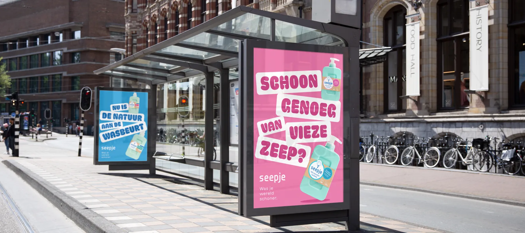 Seepje brengt hun duurzame claim onder andere via hun verpakkingen en voerde eerder al campagne via dagbladadvertenties en online kanalen. Niek Eijsbouts, Creative Director Higuita: "De copy en nieuwe stijl van onze eerste campagne brengen die optimistische stem van het merk nu ook naar de straat en in de huiskamers. Het zet je aan het denken, maar wel op een positieve manier, passend bij het merk."