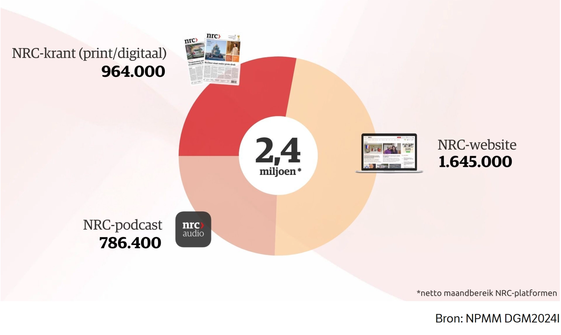 NRC bereikt maandelijks ruim 2,4 miljoen Nederlanders, waarvan er 1 miljoen behoren tot de hoogste welstandsklasse (W1). Dit zijn niet alleen betrokken lezers en luisteraars die bewust kiezen voor de onafhankelijke en betrouwbare journalistiek van NRC, maar ook invloedrijke consumenten met financiële slagkracht.
