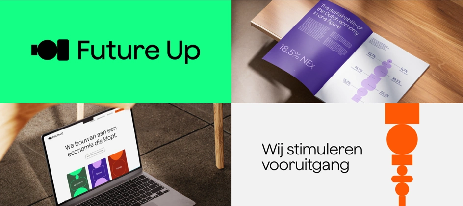 Centraal in de strategie staat de brand promise Iedereen Winst. Deze belofte brengt winst, welzijn, economie en impact samen. Total Design ontwikkelde een merkverhaal dat benadrukt dat vooruitgang ontstaat door te handelen en samen te werken. Bedrijven die verder kijken dan hun eigen belang dragen volgens Future Up bij aan een economie die op de lange termijn werkt voor iedereen.