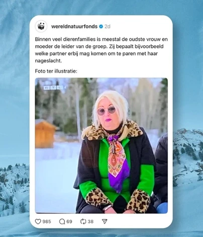 Het internet gaat compleet los en de memes en parodieën op het internet zijn stuk voor stuk om van te smullen. Zo steelt Monique meermaals de aandacht met haar bemoeienissen in het liefdesleven van haar zoon Mike. Maar niet alleen fans, ook merken spelen in op het vermakelijke programma. Zo haakte het Wereld Natuur Fonds ook in op de show en was spot-on met onderstaande meme: