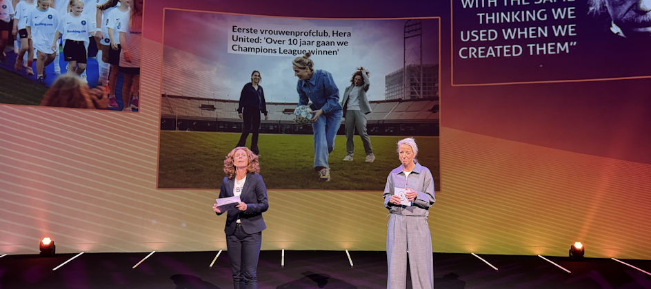 Hera’s Marieke Visser en Barbara Barend legden uit hoe ze samen met Susan van Geenen een zelfstandig professioneel vrouwenvoetbalorganisatie van de grond kregen. Vrouwenvoetbalteams waren tot nu toe vooral onderdeel van voetbalbedrijven die teren op hun mannelijke topvoetbalteams. Hera wilde dat doorbreken en dat is gelukt.