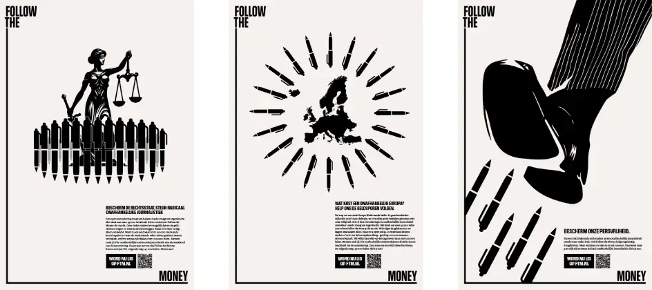 De eerste drie uitingen behandelen kernthema’s die aansluiten bij het journalistieke werk van Follow The Money: de bescherming van de rechtsstaat, de bewaking van Europa en de weerbaarheid tegen juridische druk op onafhankelijke journalistiek. In beeld en tekst staat de oproep tot lidmaatschap centraal, omdat betalende leden essentieel zijn om de macht te blijven controleren.